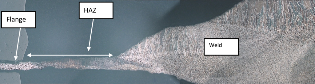 Figure 3 Cross section of the flange adjacent to the circumferential weld