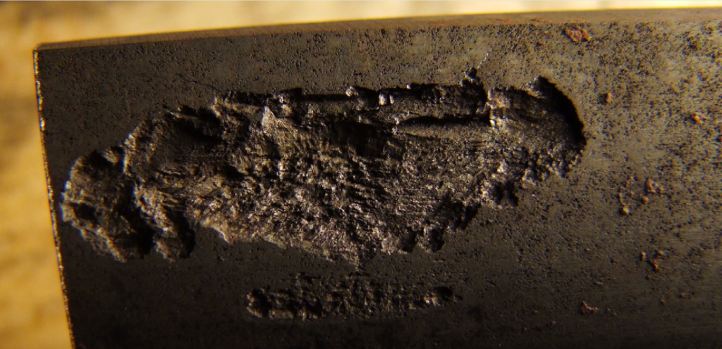 Damage was evident at a similar position on the same face in the addendum area of the majority of the teeth. For many of the teeth, this damage was minimal, see Figure 2. For four of the teeth, the damage was more extensive, see Figures 3 and 4.