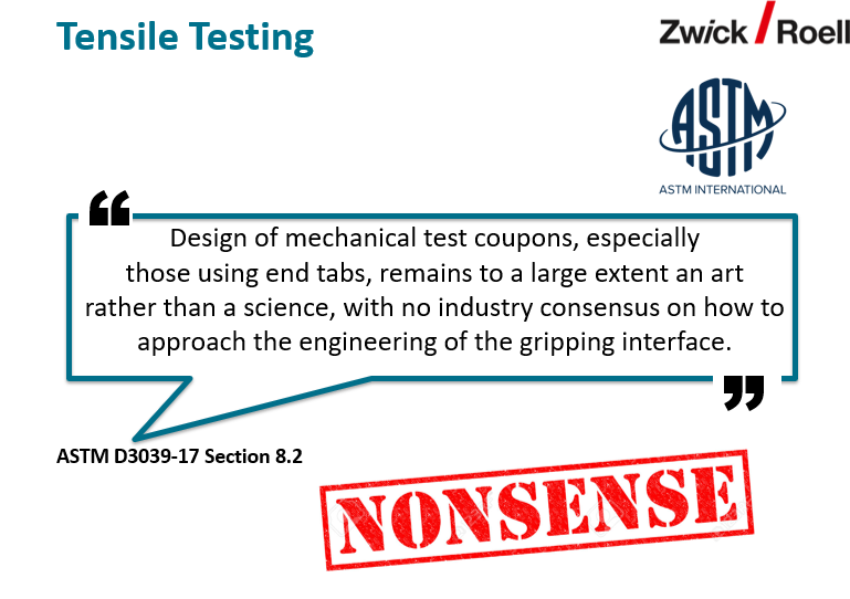 There seems to be a sense of unnecessary mystery in the composites industry surrounding the end tabbing of composite test specimens. This view is not helped by the following statement in ASTM D3039-17 for tensile testing [1]:
